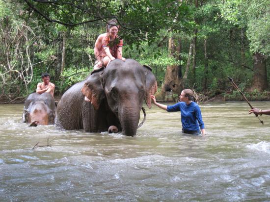 Le bain des elephants au petit matin