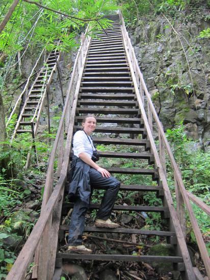 L'escalier raide et un peu branlant pour acceder a la cascade