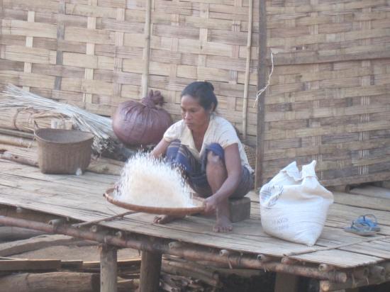 préparation de la farine de maïs par les enfants Hmong