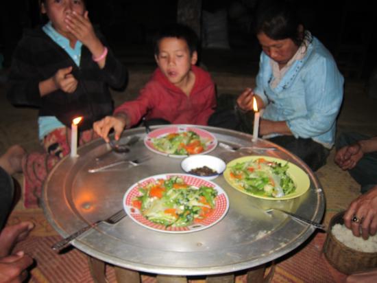 Dîner, avec les mains et avec notre famille d'accueil