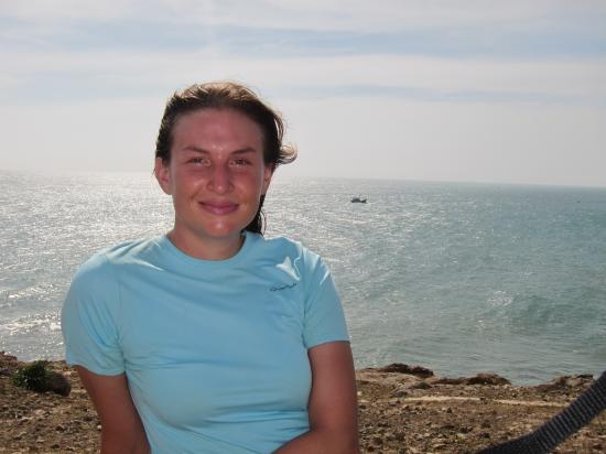 Julia en pince pour la crevette geante kitsch de l'aquarium de Nha Trang