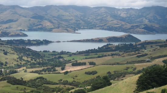 Magnifique vue sur la peninsule volcanique d'Akaora (pres de Christchurch), ou les Francais ont debarque en 1er