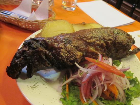 Délicieux ! Quechua = Cuy / Anglais = Guinea pig / Français = cochon d'Inde (désolés Aurélie...)