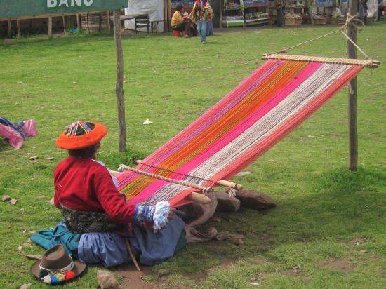 Tissage de l'alpaga sur un métier traditionnel en bois (village de Chinchero)